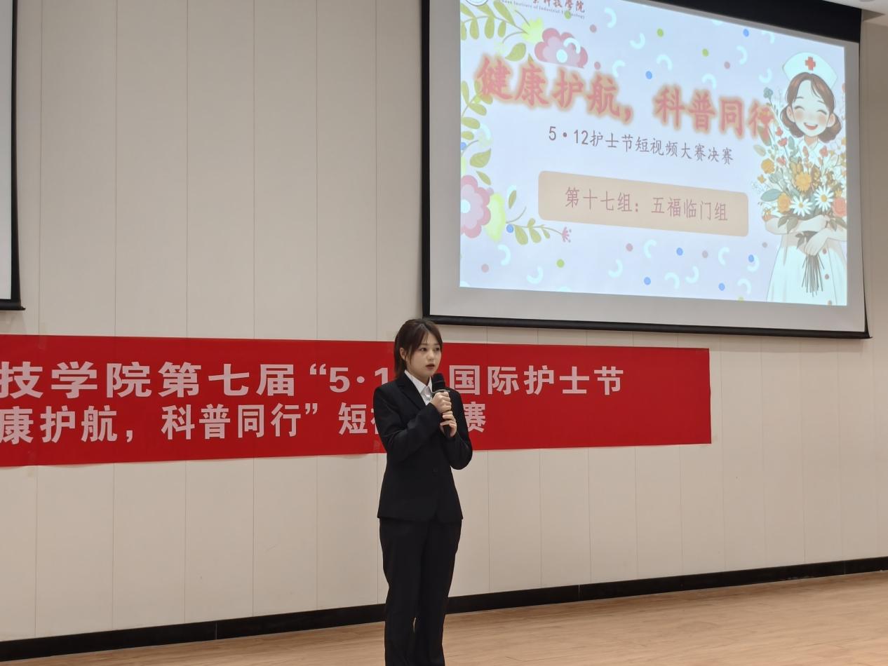 4月15日晚,大健康学院在龑江B区报告厅举行5·12国际护士节健康宣传短视频大赛决赛。学院副院长杨橙、党总支副书记马志雪、教学办副主任蒋梦碟及专业教师刘晓琴担任评委,青锐担任主持人。