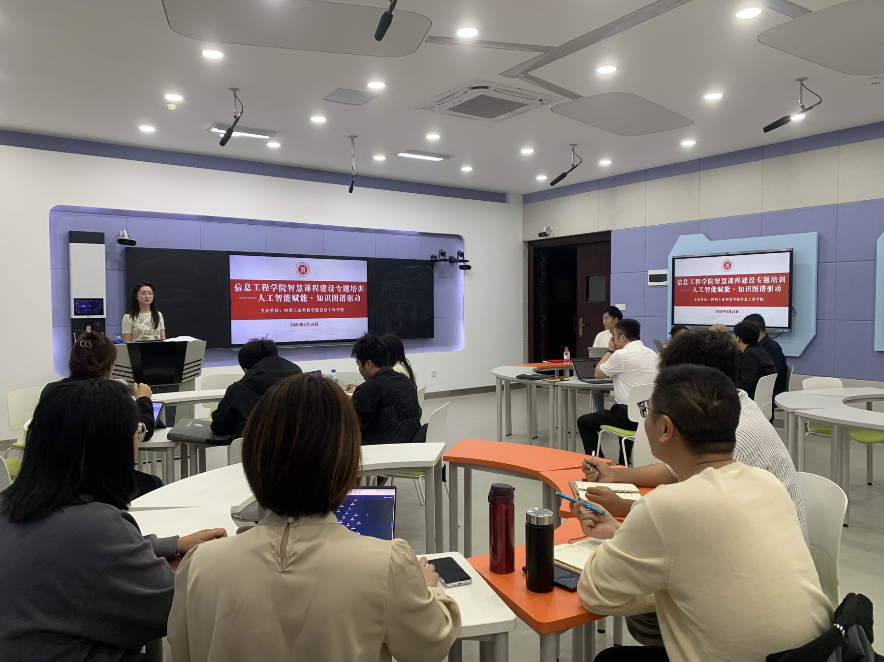 为扎实推进智慧课程建设,推动AI与教育教学深度融合,4月16日下午,信息工程学院在龑江E406举办第一期智慧课程建设专题培训交流会。超星集团技术团队、信息工程学院智慧课程建设团队负责人及骨干教师参加会议。会议由院长宋文正主持。