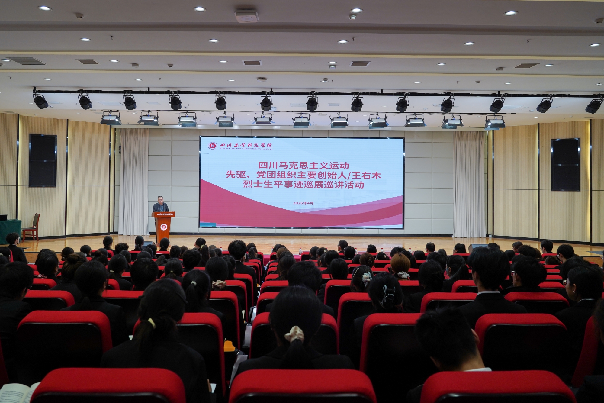 4月17日上午,纪念王右木烈士诞辰139周年暨四川党组织成立103周年巡展巡讲活动启动仪式在学校龑江C区报告厅举行。校党委委员、校长助理、党委宣传部部长邵长辉,江油王右木纪念园主任王良秋、原副主任文继兴、宣教部主任傅琳婷、助理馆员张春懿出席活动。马克思主义学院院长毛晓红、党总支副书记杨永岗、红色歌谣研究中心冯军成、校团委副书记夏陶及学校青马班学员参加启动仪式。