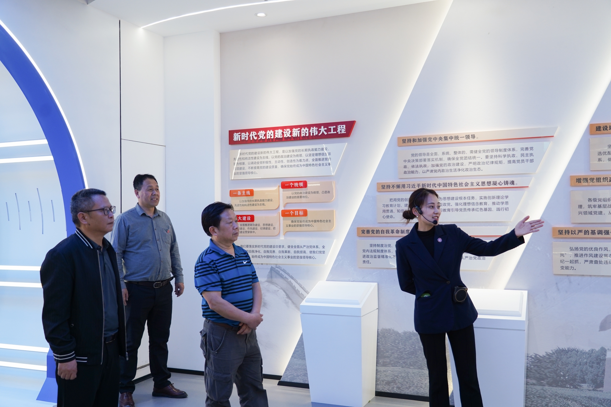 当天下午,在邵长辉带领下,校团委、马克思主义学院相关负责人陪同王右木纪念园一行参观了学校智慧党建馆、国防廊、同心广场及“两站培养”思政育人阵地。
