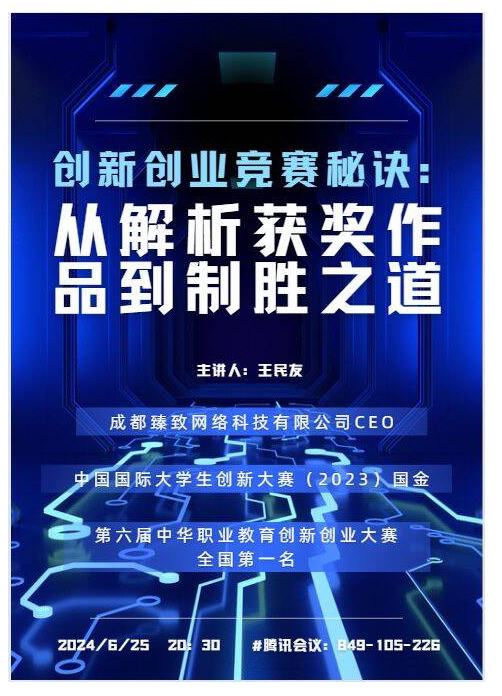 为进一步提高我校学子创新创业能力,加强校企沟通,6月25日晚,创新创业学院成功举办了一场以创新创业竞赛为主题的线上活动。本次活动中,创新创业学院特邀成都臻致网络科技有限公司首席执行官、中国国际大学生创新大赛国金奖得主王民友,对我校创新创业团队的项目作品进行深入解析并同我校学子进行了一场创新创业经验分享会。