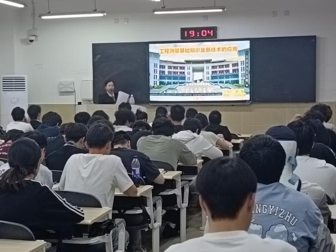 今日,信息工程学院在龑江校区C402教室举办《工程测量基础知识及新技术的应用》专题讲座。本次讲座由曹敏老师主讲,土木工程、道路桥梁与渡河工程、工程造价专业等近百名学生到场聆听。
