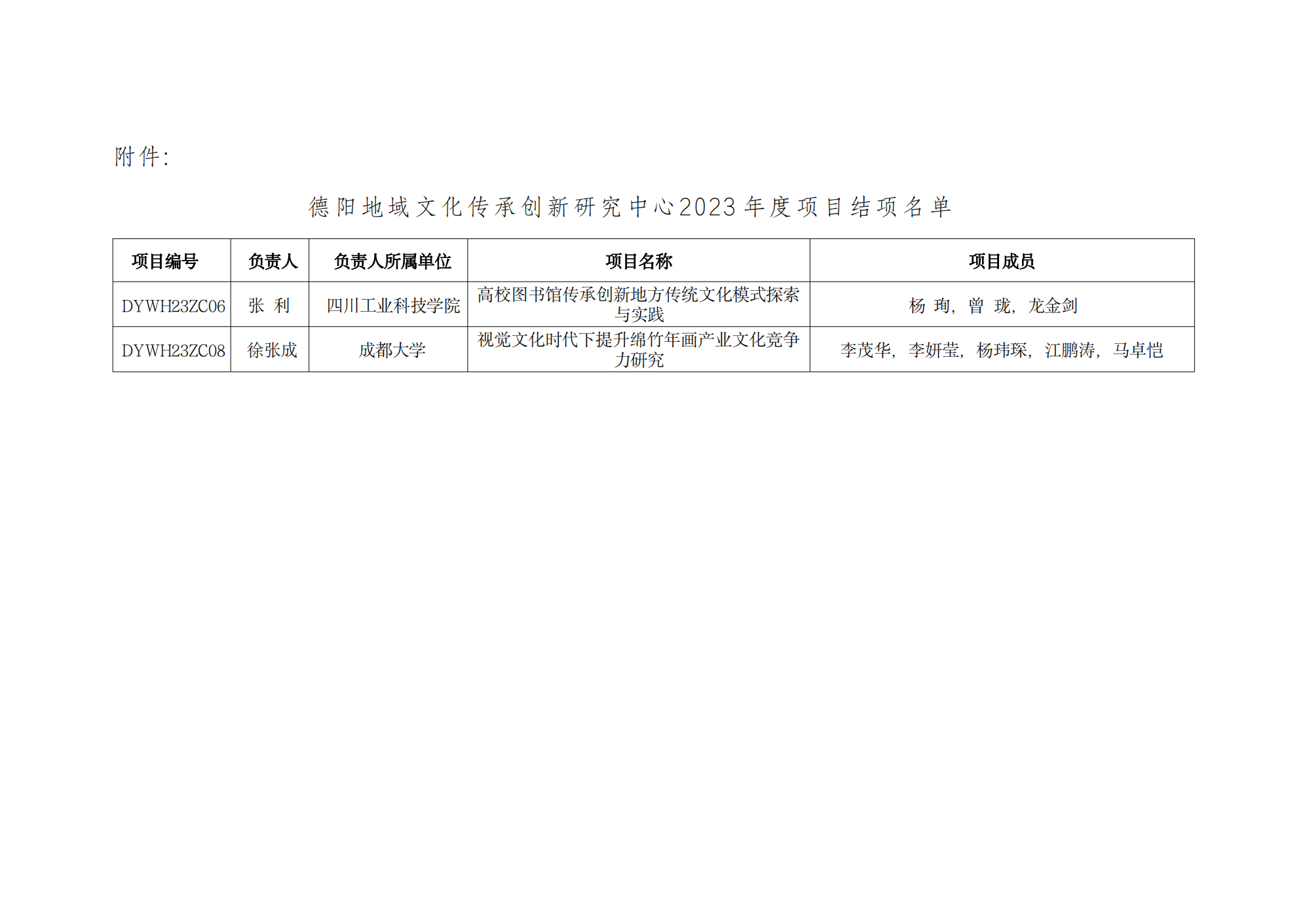 德阳地域文化传承创新研究中心2023年度项目结项通知