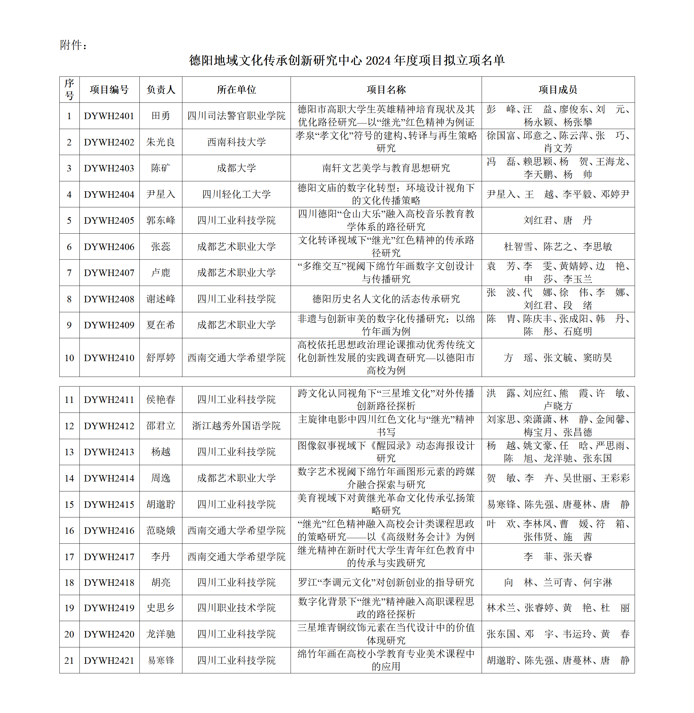 附件:德阳地域文化传承创新研究中心2024年度项目拟立项名单