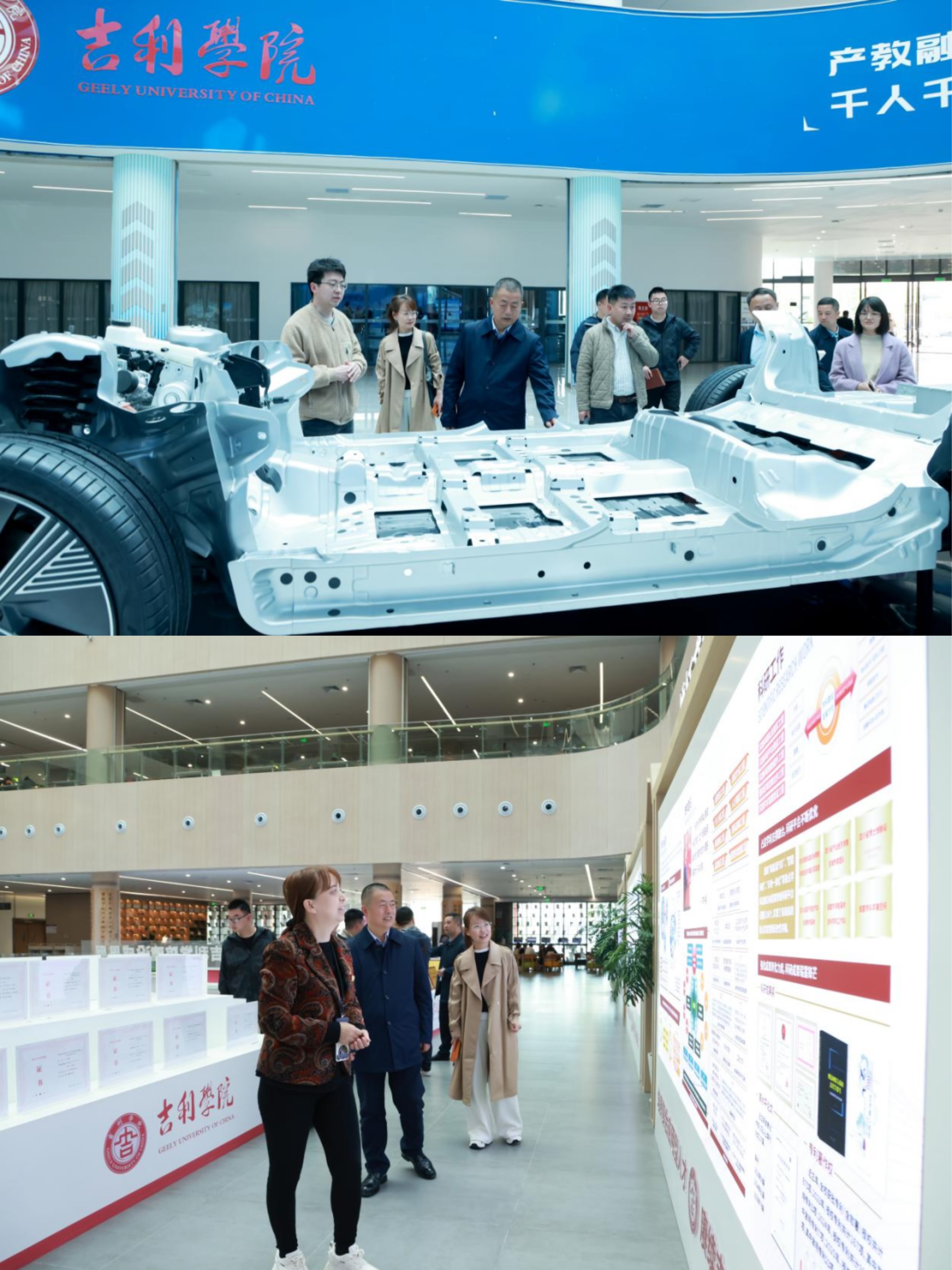 交流中,双方围绕实训基地共建、产业学院运营、校企协同育人等重点内容进行了深入研讨。考察组充分借鉴了吉利学院依托产业资源办学的先进经验,并在产教融合项目共建上达成合作共识。考察组实地参观了吉利学院实验实训中心、产教融合创新平台,详细了解了其“校企一体、岗课赛证融合”的育人模式。