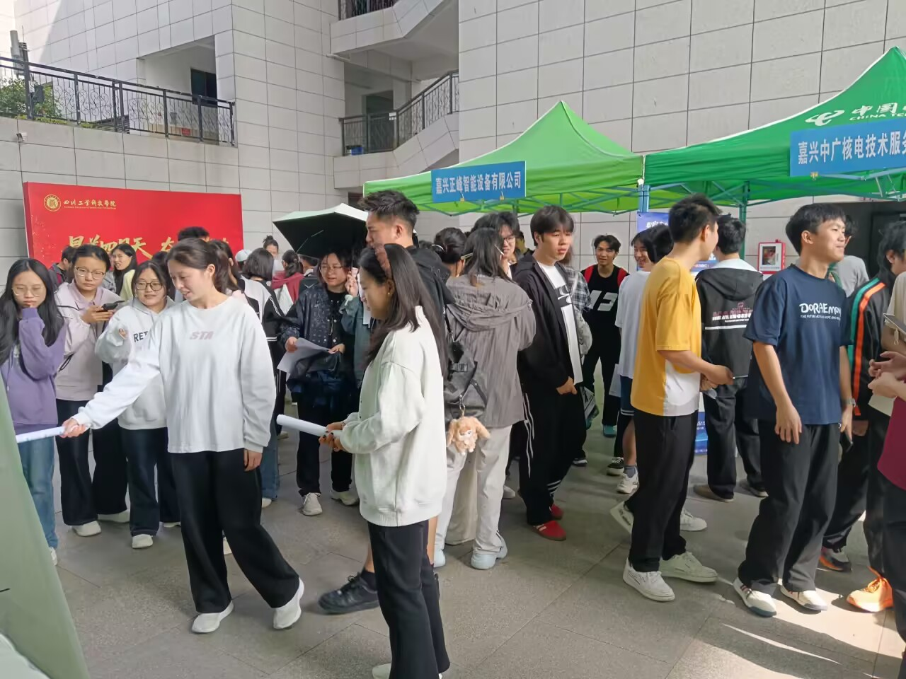 为扎实推进2027届毕业生就业工作,切实拓宽就业渠道,助力毕业生实现高质量就业,4月23日上午,浙江海盐县招聘团走进四川工业科技学院,在龑江综合楼中庭举办专场招聘活动。经济管理学院积极响应、精心组织,全力推动此次招聘活动落地见效。