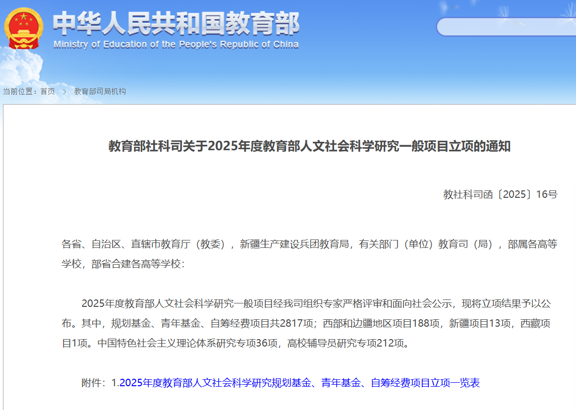 我校首次获批教育部人文社会科学研究项目