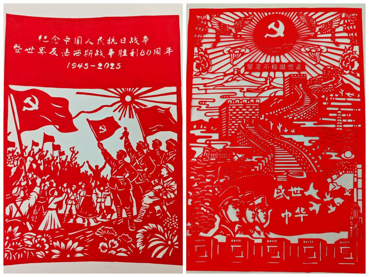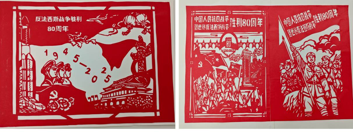 为激活革命文化的育人价值,学院美育教研室充分发挥教学指导作用,带领课程团队创新教学形式。教研室组织挖掘抗战历史中的经典素材,将英雄事迹、战役场景等转化为可操作的剪纸创作内容,引导学生以传统剪纸技艺为媒介,通过剪刻、构图等实践环节,沉浸式再现抗战历程,深刻领悟抗战精神的时代内涵。这一教学设计既帮助学生夯实了学前教育岗位所需的手工教学技能,又推动爱国情怀从“认知”向“践行”转化,实现了专业能力与思政素养的同步提升。