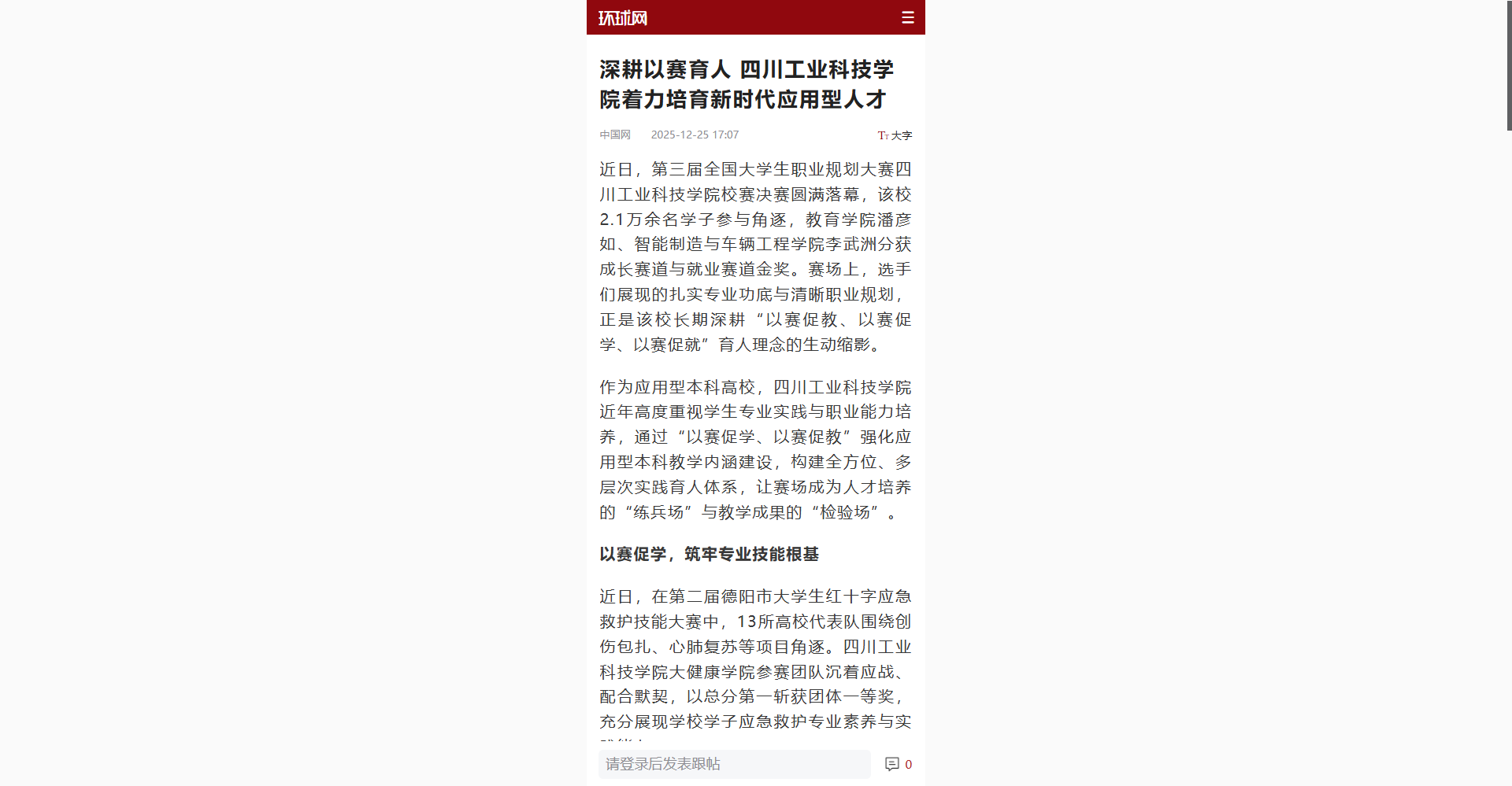 【环球网】深耕以赛育人 四川工业科技学院着力培育新时代应用型人才