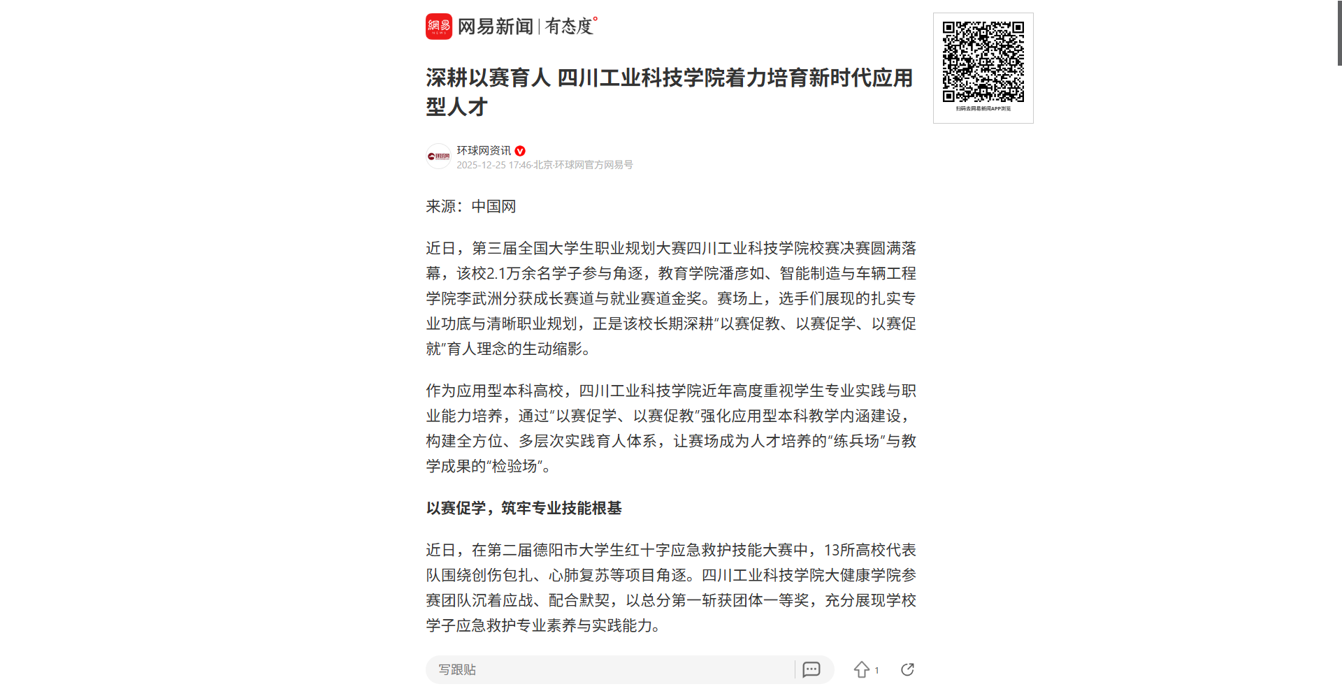 【网易新闻】深耕以赛育人  四川工业科技学院着力培育新时代应用型人才