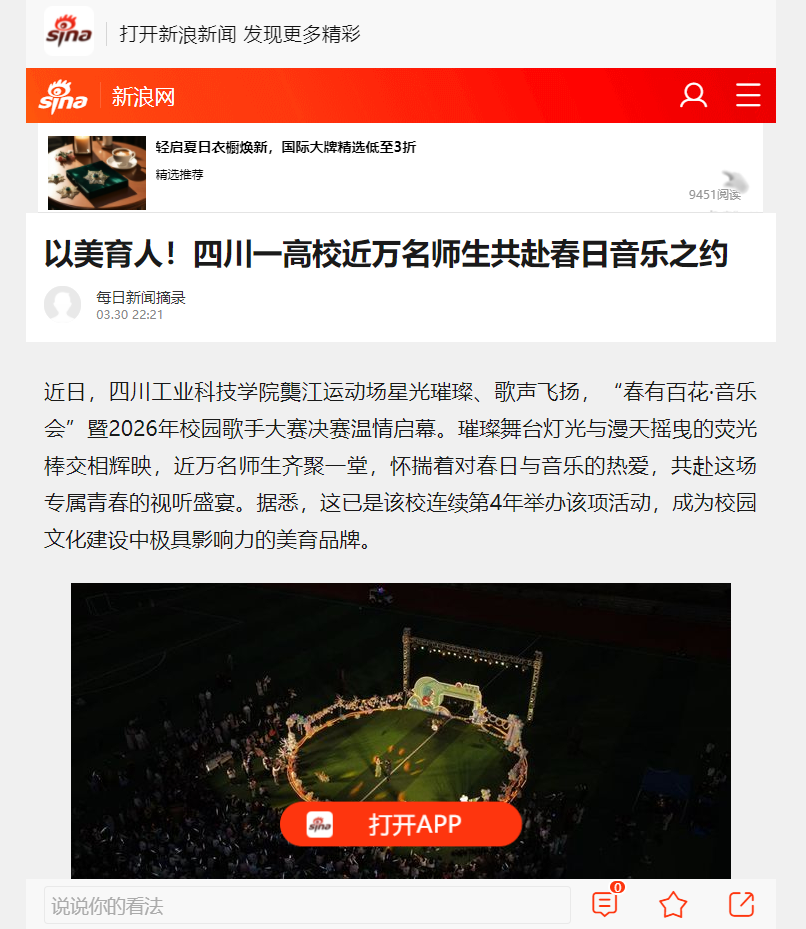 【新浪网】以美育人!四川一高校近万名师生共赴春日音乐之约