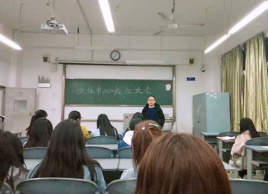 3月10日,教育学院第一届传媒中心成立大会在钟灵楼106教室举行。学院党支部书记熊定永,学工办主任张杰,团总支书记黄译漫,媒体中心指导老师刘琴以及媒体中心全体成员参加了本次大会。