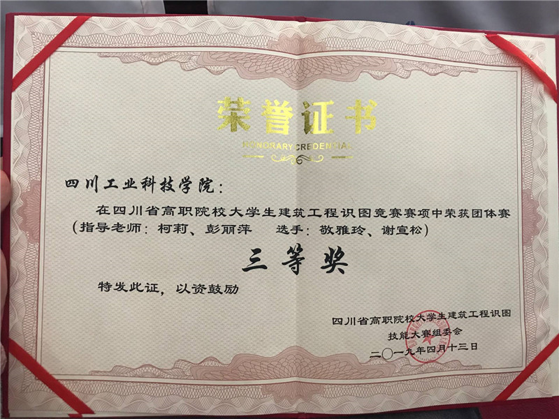 本次竞赛全省共有36支代表队参赛,在5个小时的激烈角逐中,建筑工程学院学生敬雅玲、谢宜松组成的代表队荣获团体赛三等奖。