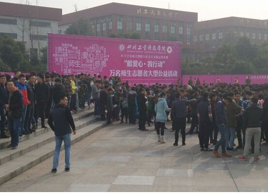 2015年1月9日下午3时,“献爱心,我行动”万名师生志愿者大型公益活动启动仪式在四川工业科技学院五星广场隆重举行。我系积极响应学院公益活动的号召,全体师生参与了本次公益活动启动仪式并有近300余名师生参与了造血干细胞的志愿者的报名和抽取血样。