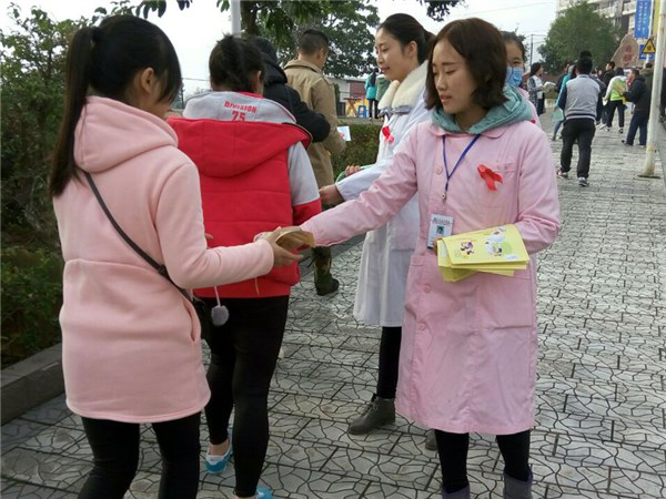 为进一步加大我校“防艾”宣传教育工作力度,增强学生的自我防护意识,构筑学生坚固“防艾”心墙,珍爱生命、净化心灵、做健康、文明的人。在第28个“世界艾滋病日”来临之际,学校邀请罗江县中医院医务人员为学生进行宣传咨询活动。本次宣传活动悬挂标语、设立咨询台,向过往的学生发放各种艾滋病宣传知识读物、宣传手册、宣传画等物品共计2000余张。参加宣传的工作人员以现场咨询解答、有奖答题等手段充分调动学生的参与积极性,扩大宣传范围。上午10时10分,宣传活动达到了顶峰,几乎所有上下课的学生都来到宣传地点咨询、答题、要宣传手册画册,咨询台疾控中心的同志耐心解答同学们的问题。