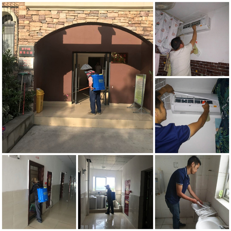 为做好校园环境清洁消毒工作,有效防止疾病传播,后勤管理处以防控新冠肺炎及相关传染病为重点,扩大消杀区域,加大消杀力度,于5月16日起对学校内所有学生公寓、教学楼、实训室、图书馆、垃圾存放点等场所进行了全方位、全覆盖、无死角的环境卫生整治和通风消毒,进一步改善学校环境卫生条件,创造整洁、健康、文明的校园环境。