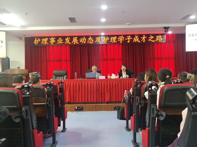 在建党100周年及5.12国际护士节来临之际,学院特邀北京大学董哲教授于2021年4月28日晚上7点,在东区图书馆三楼学术厅做了题为“护理事业发展动态及护理学子成才之路”的学术报告。董教授是学校国际交流与合作工作高级战略顾问,曾任北京大学医学部应用语言学系主任、国际合作处处长、首都医科大学国际学院院长、教育部大学外语指导委员会副主任委员、教育部全国医学专业来华留学生教育专家工作组专家、享受国务院特殊津贴。参加报告的人员有护理学院师生和国际学院领导共计160余人,活动由护理学院院长陆春桃主持。