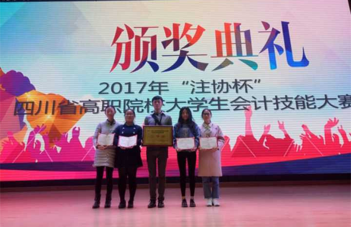由四川省教育厅主办的2017年“注协杯”四川省高职院校大学生会计技能大赛于4月8日圆满结束。我校财经学院派出2015级会计电算化专业冯迪、周银银、蒋丹、何悦四位同学组队参赛,并荣获团体二等奖,这也是该院连续5年参加该项赛事获奖。