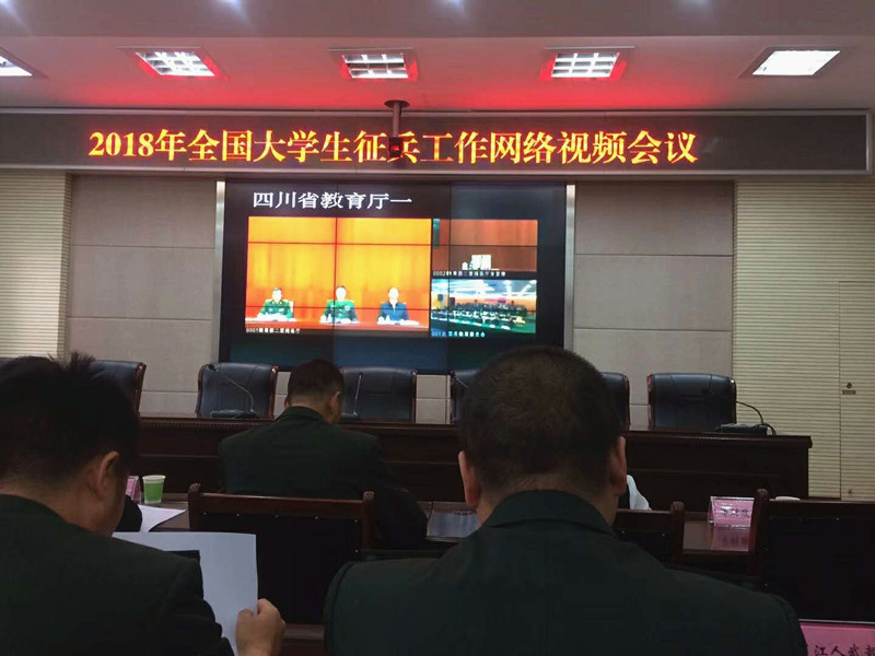 4月3日上午,教育部、中央军委国防动员部在京召开全国大学生征兵工作网络视频会议。德阳市教育局积极响应,组织市委宣传部、市政府办、市公安局、市卫计委、市民政局、市财政局、市人社局、区域各高校参加此次会议。我校武装部副部长季军代表我校参加此次会议。