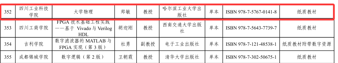 近日,学校郑敏教授主持编写的《大学物理》教材成功入选四川省“十四五”普通高等教育本科省级规划教材名单。这是学校在深化教育教学改革、落实立德树人根本任务进程中取得的又一重要成果。