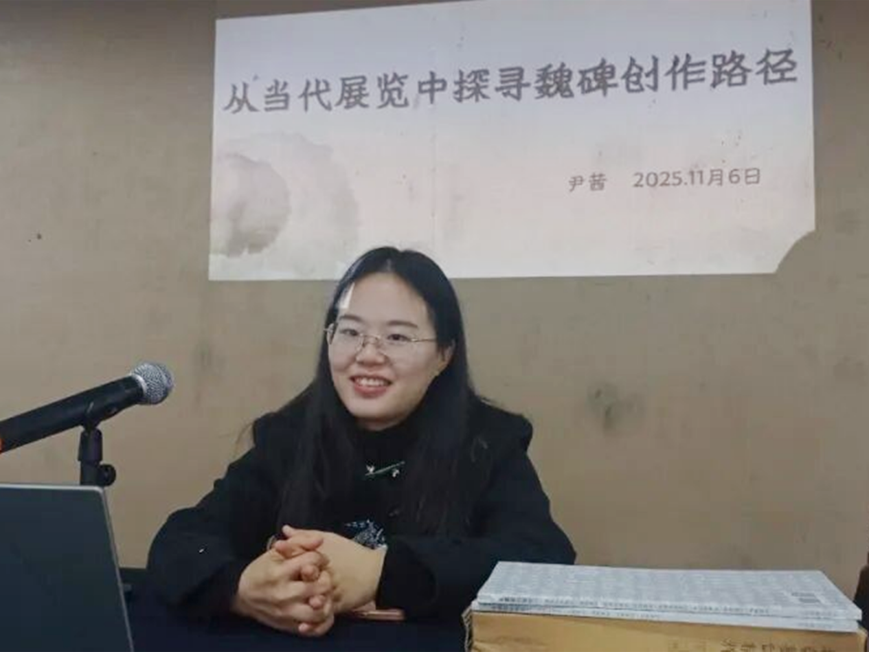 近日,教育学院书法教师尹茜应邀出席德阳市书法家协会主办的文化交流活动,在石刻公园尘沐堂主讲"从当代展览中探寻魏碑创作路径"专题分享会。活动吸引了80余位书法爱好者参与,展现了学校教师的专业素养,体现了教育学院在文化育人方面的扎实工作成效。