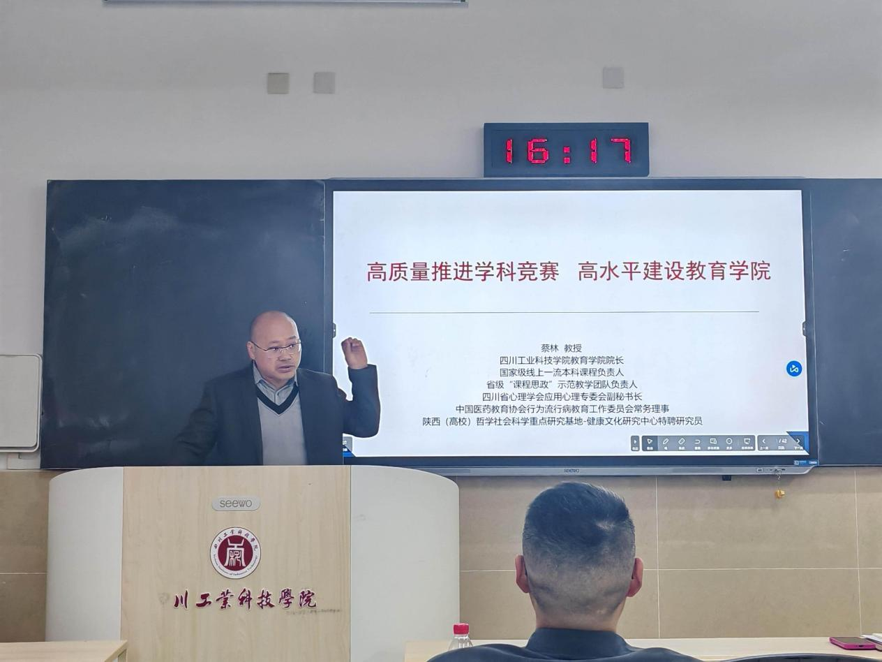 会上,学院院长蔡林首先聚焦学科竞赛工作展开部署。他客观分析了学院当前学科竞赛的获奖现状,存在的短板与不足,提出学科竞赛对提升人才培养质量、彰显学院办学特色的重要意义。随后,蔡林围绕赛事选型、团队组建、指导方法等方面开展专项培训,明确各教研室精准对接各级各类竞赛资源,建立“以赛促学、以赛促教、以赛促改”的长效机制,全力推动学院学科竞赛成绩实现突破。