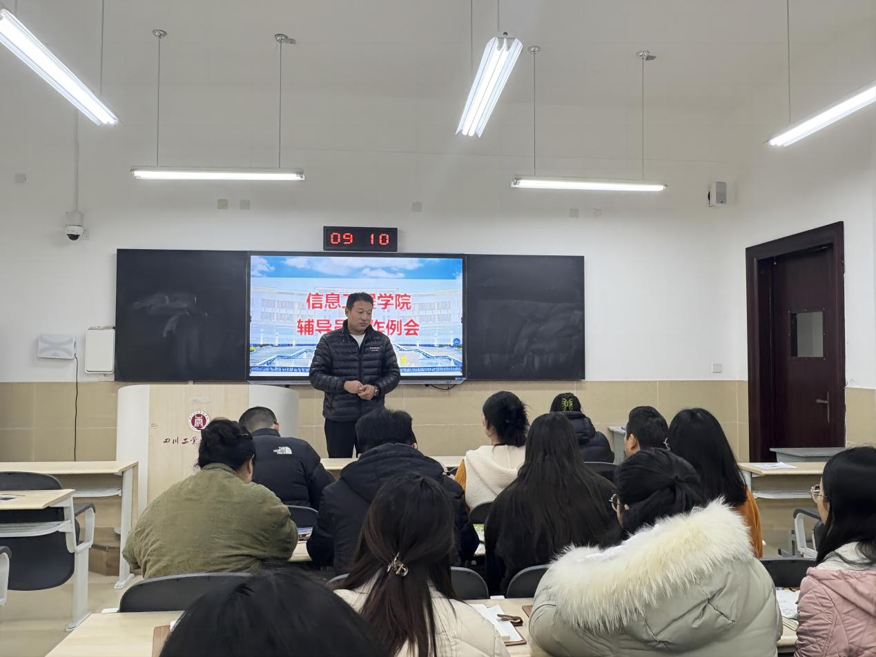 12月18日,信息工程学院在学院会议室召开辅导员工作例会,研究部署近期学生教育管理工作。学院党总支副书记魏天强、学工办副主任周涛及全体辅导员参加会议,会议由魏天强主持。