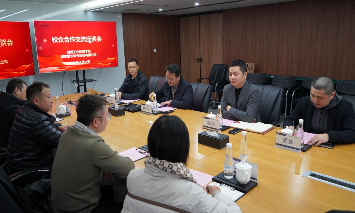 12月24日,信息工程学院院长宋文正、党总支副书记魏天强、产教融合办公室副主任邓杰及计划财务处尹华雯老师一行赴成都鹏业软件股份有限公司开展校企合作交流。双方围绕产教融合、协同育人等议题展开深入研讨,共同探索数字经济背景下人才培养的新模式与发展路径。