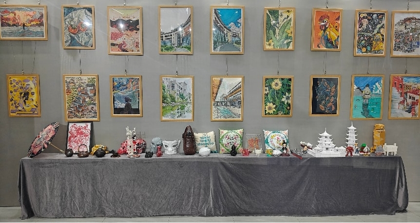 活动中,信息工程学院数字创意系集中展示了75件学生作品,涵盖3D建模、绘画艺术与手工艺等多个类别。其中,24件3D打印与数字建模作品结构精密、创意新颖;36件绘画作品技法多元、情感丰沛;15件手工艺品设计精巧、制作细腻。各展区互动积极,氛围热烈,充分展现了学生的专业素养与创新活力。