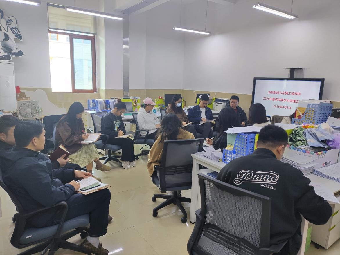 4月1日下午,智能制造与车辆工程学院在龑江C509办公室召开学生管理工作例会。学院党总支副书记何彬主持会议,全体辅导员参加会议。