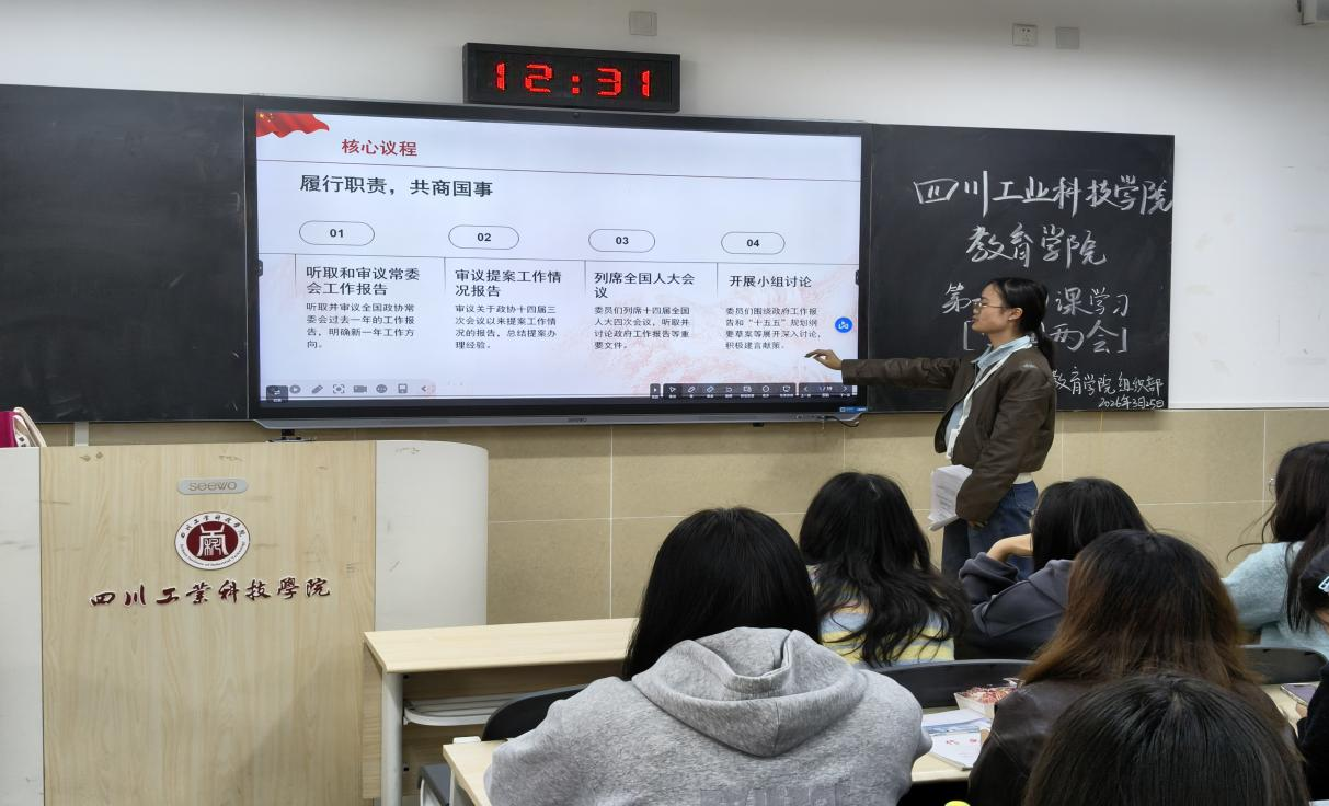3月31日中午,教育学院团总支学生分会组织召开“聚焦2026 深入学习两会精神”主题团课暨2025-2026学年第二学期第一次团支书工作会议。各班级团支书参加会议。