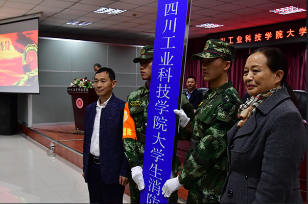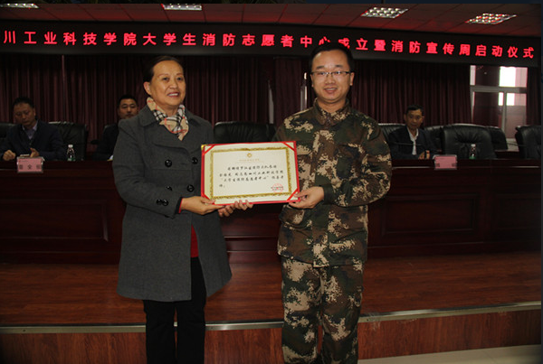 成立大会上,倪霞向彭银川颁发了聘书;李俊向大学生消防志愿者中心授队旗;魏崛、倪霞一同为大学生消防志愿者中心授队牌,宣示着我校大学生消防志愿者中心正式成立。