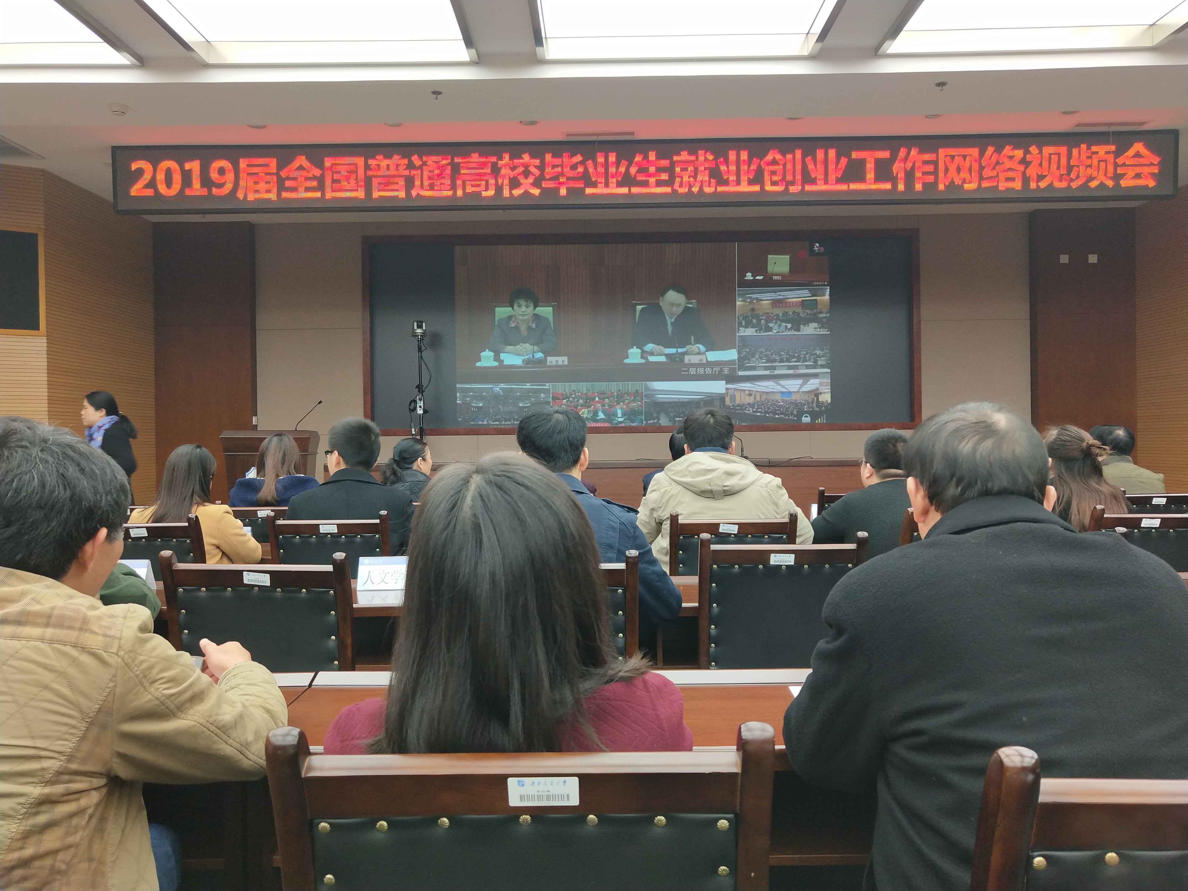 11月28日上午,教育部召开2019届全国普通高校毕业生就业创业工作网络视频会议。教育部副部长林蕙青出席会议并讲话。省教育相关处室负责同志,我校校长张小南,招生就业处副处长曾尧受邀在分会场参加了视频会议。