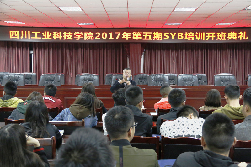11月6日,由德阳市人力资源与社会保障局主办,我校创新创业学院承办的2017年第五期SYB大学生创业培训开班仪式在图书馆408举行。就业指导中心主任曾尧、校企合作办副主任邓鼎成及相关培训教师参加了开班仪式,典礼由邓鼎成主持。