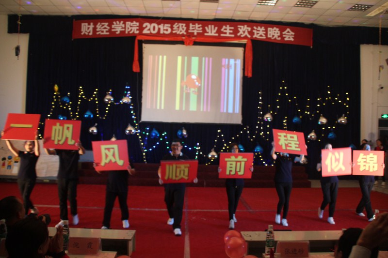 晚会上,张进砂为2018届顶岗离校学生送上墨宝三幅,勉励同学们要“登高望远,不忘初心,脚踏实地”。由全院教职工带来的集体舞蹈《爱的小苹果》,表达了财经学院全体老师的关爱、和祝福的心声,将晚会的气氛推向了高潮。舞蹈《鱼跃生息》突出了莘莘学子们坚韧不拔的精神追求。川剧《变脸》使同学们感受到了中国传统文化的魅力。学生代表的致辞表达了所有学生对未来美好生活的向往。