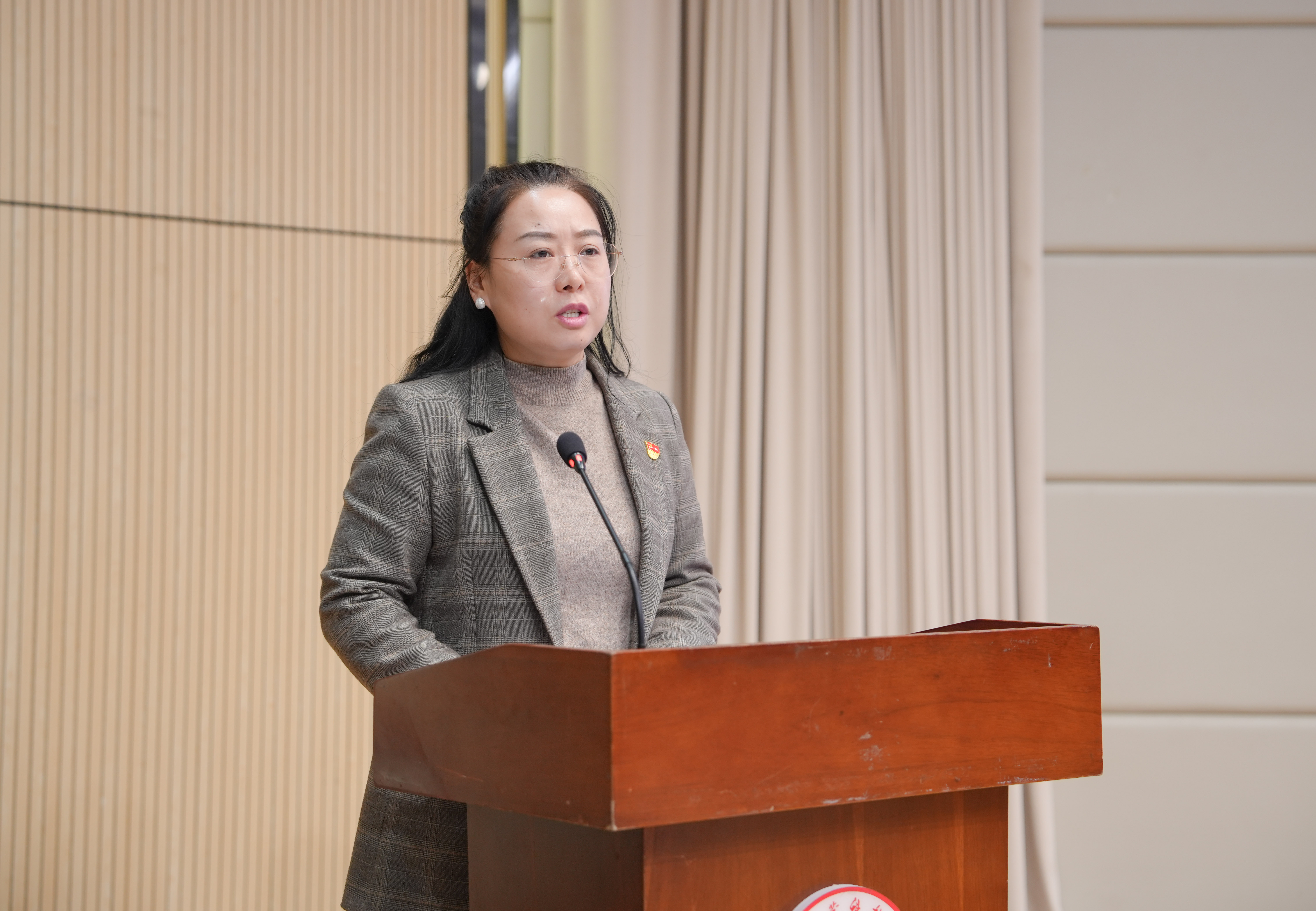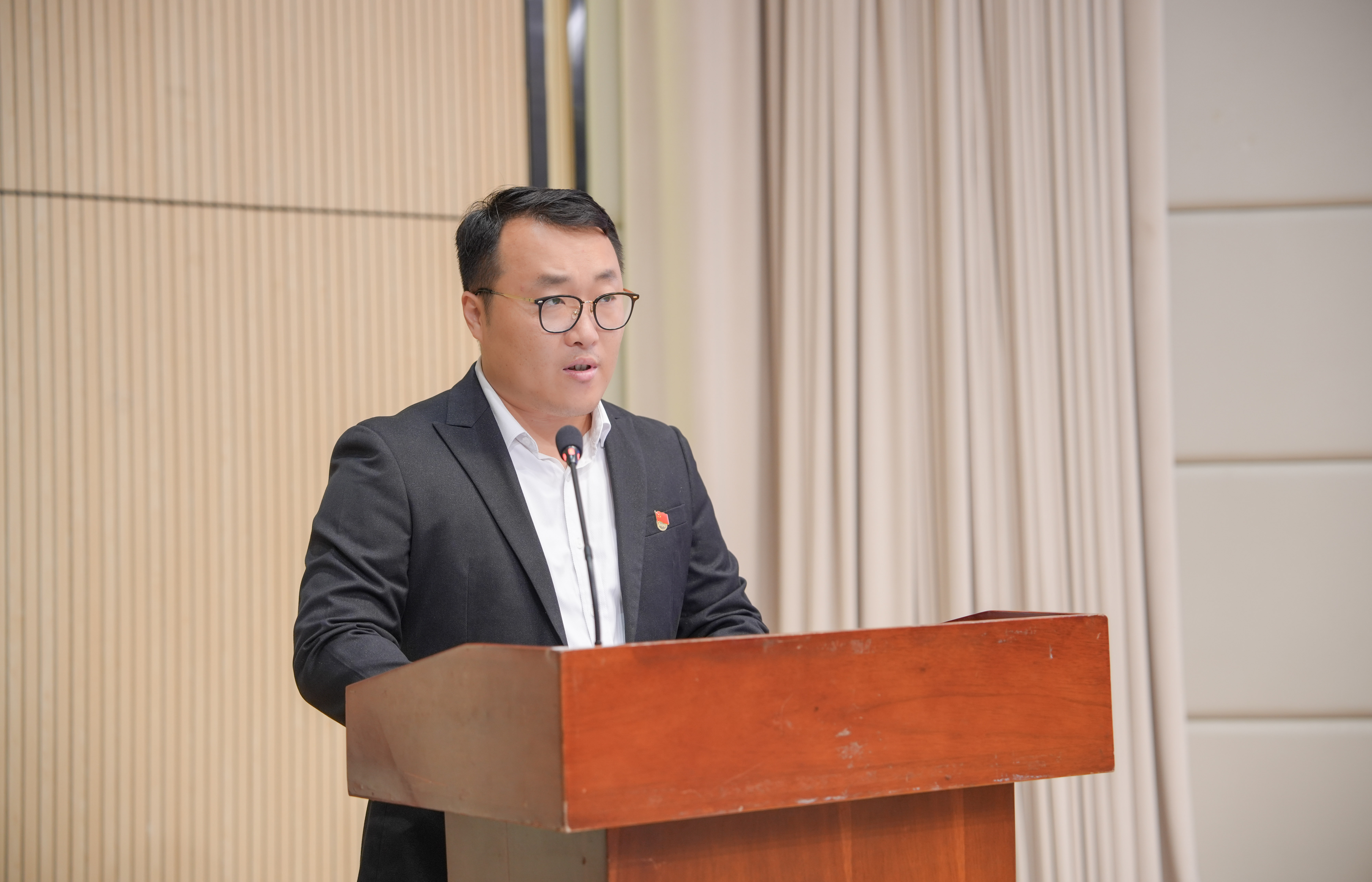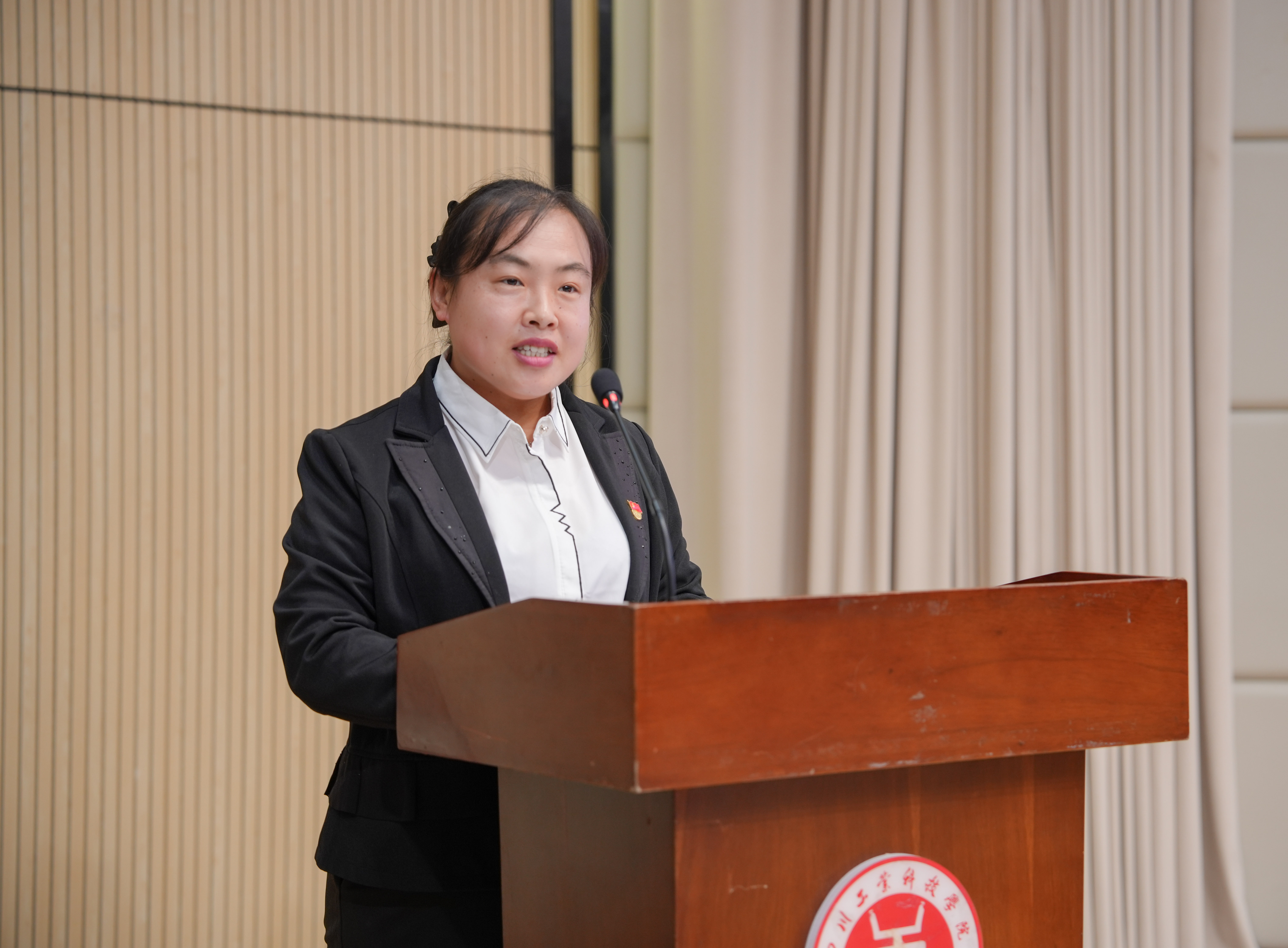 机关党总支组织委员、科技处处长刘翠同志代表全体授课教师作表态发言。她讲到,全体学员要坚持以学铸魂筑牢理想信念根基、以行践知锤炼坚强党性修养、以责明志展现新时代青年担当,切实做到组织上入党与思想上入党相统一。