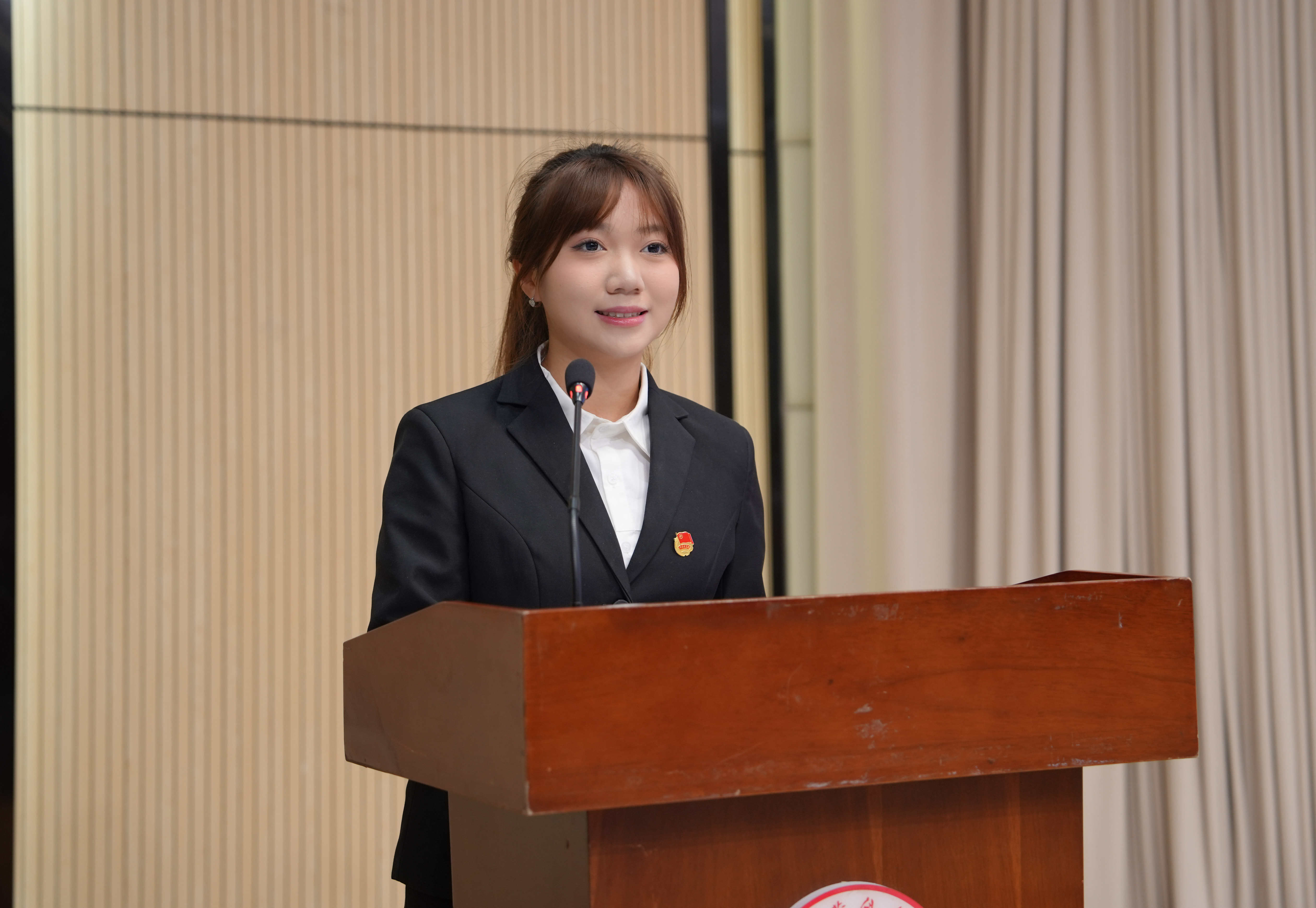 学员代表24级大数据2班的李堉铃同学在发言中郑重承诺,将以求知若渴的态度学理论、以求真务实的精神强党性、奋勇争先的担当践初心,争取早日成为一名合格的共产党员。