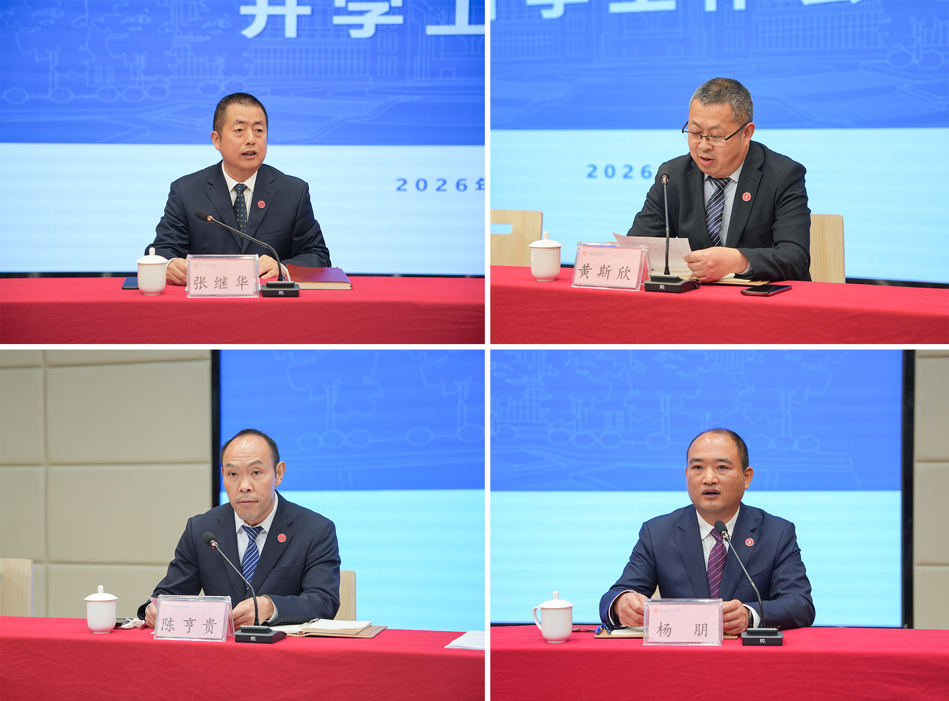 随后,副校长张继华、黄斯欣、陈亨贵、杨朋分别结合分管工作,围绕教学科研、学生管理、后勤保障、安全稳定等重点领域,作了具体安排部署,明确工作要求、压实工作责任,确保各项任务落地落细。