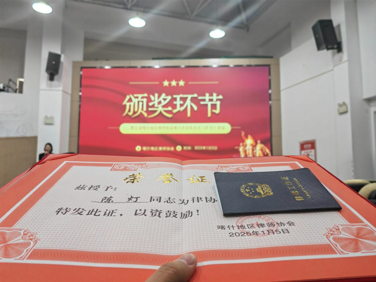 “双重扎根”:母校与边疆的共同培育。在陈灯的成长轨迹中,四川工业科技学院和新疆叶城县构成了他人生的双重坐标。母校校训“明德、博学、笃行、创新”的一路相伴,校园的林荫道曾见证他在图书馆奋战的日子,他的勤恳与刻苦是四川工业科技学院选调生名片上最朴实的底色,是扎根边疆基层最有力的通行证;在2019年获取四川省“我能飞”大学生成功创业者提升培训“优秀学员”称号;参加2019年四川省大学生武术套路比赛获得男子B组传统拳术第一名;参加2020年法律工作者执业考试顺利通过并于2021年毕业后领取证书;2020年6月登记人体器官捐献,大学工作期间,参加多项公益活动并获得多项公益捐赠证书。2023年更新律师工作证(A证),积极参加线上线下的法律活动,法律服务质量高。2024年6月被聘任为喀什地区律师协会公益法律服务工作委员会委员;2024年9月被聘任为喀什地区律师协会专业委员会政府法律顾问专业委员会委员。作为一名中共党员,驻乌夏巴什镇亚贝希(14)村期间,他组织党员培训学习、参观叶城县昆仑国学书院以及乌夏巴什镇亚贝希(14)村“党旗映天山”主题党日活动,一直秉持“我为人人”的理念。如今的他继续在乌夏巴什镇(12)村发光发热,为了更好的为村民服务,2025年他还考取了社会工作者证书。陈灯的成长还在继续······